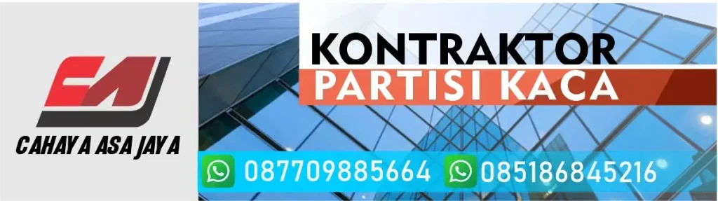 Kontraktor partisi kaca CAHAYA ASA JAYA hadir sebagai solusi terbaik Anda. Kami adalah spesialis pemasangan partisi kaca dan aluminum terkemuka. Layanan kami mencakup area luas: Jakarta, Bogor, Depok, Tangerang, Bekasi, hingga Bandung. Dapatkan kualitas pemasangan yang presisi dengan harga paling kompetitif.
